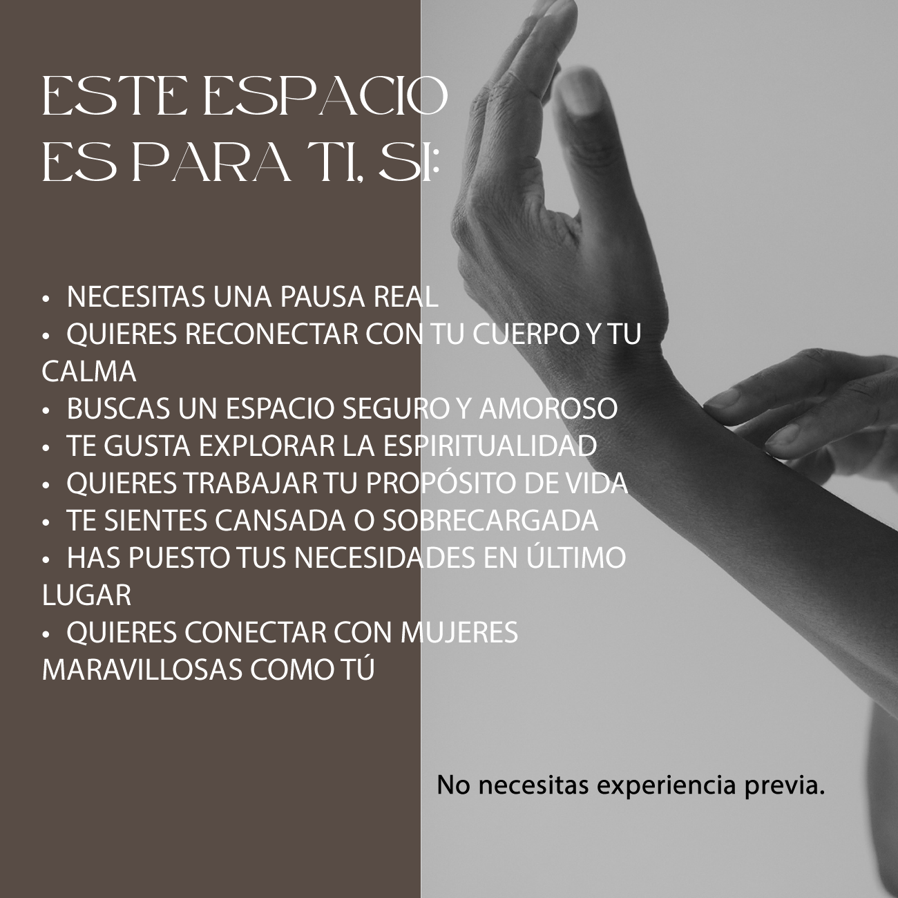 Un espacio seguro y amoroso para pausar, respirar y reconectar contigo misma a través del cuerpo, la naturaleza y la experiencia consciente.